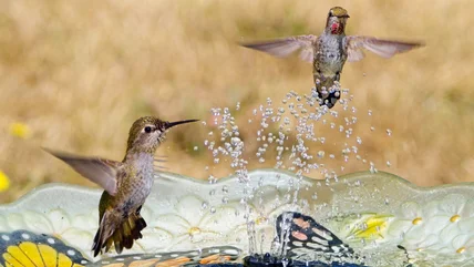 Having a beautiful hummingbird-filled garden doesn't have to be a distant dream, it can be a reality. All it takes to have the hummingbird garden of your dreams is planting a great selection of plants that will attract hummingbirds, and keep them cool and hydrated by adding a mister to their bird bath. Adding an additional food source is a good idea as well. Hummingbirds are all about eating, so planting a variety of flowers they love is a sure-fire way to keep them coming back. One hummingbird-friendly flower that will add color to your garden year-after-year is the hoary vervain (Verbena stricta). This clump-forming perennial is native throughout the midwest, especially Missouri, and features tiny, purplish-blue flowers that form on spikes, sticking straight up in bunches.