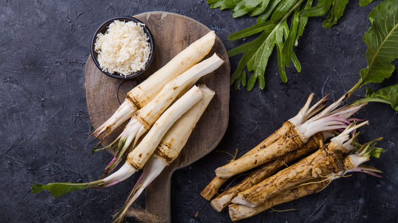 Horseradish thrives in full sun to partial shade. It grows well in USDA plant hardiness zones 3 through 9, and it doesn't mind cool weather. Cut a hunk of horseradish root, then let it heal over for several days before planting it. Plant the cutting on an angle in deep, rich, and loamy soil in early spring or late fall, when the weather is generally cold but the ground isn't frozen. If you're planting more than one piece of horseradish, space them a foot apart. Though horseradish tolerates drought, it could affect the texture of the root. Water horseradish about once a week.