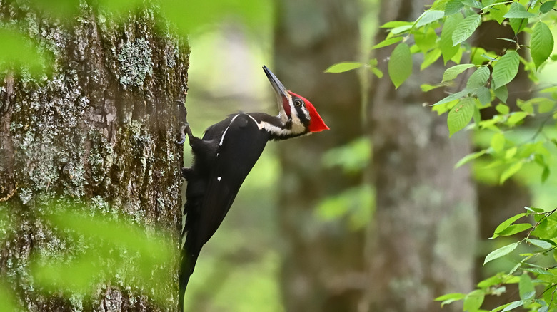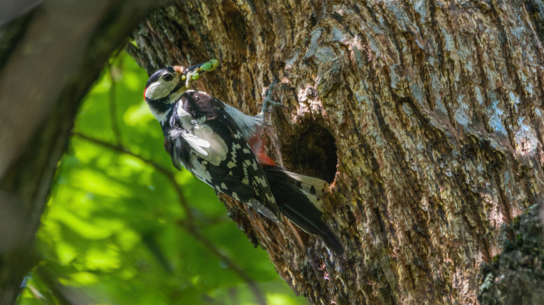 One of the biggest contributions woodpeckers make to your backyard is eating a lot of spiders, insects, and grubs. Pileated woodpeckers, in particular, eat so many ants! With all this bug-eating going on, woodpeckers can be very helpful in lowering the numbers of pests in your yard. One bug in particular that woodpeckers love to feed on is the emerald ash borer. This invasive, bright green bug is wreaking havoc on ash trees by boring into the tree and feeding underneath the bark. This voracious feeding is interrupting the ash tree's ability to transport vital nutrients and water resulting in millions of ash trees dying.