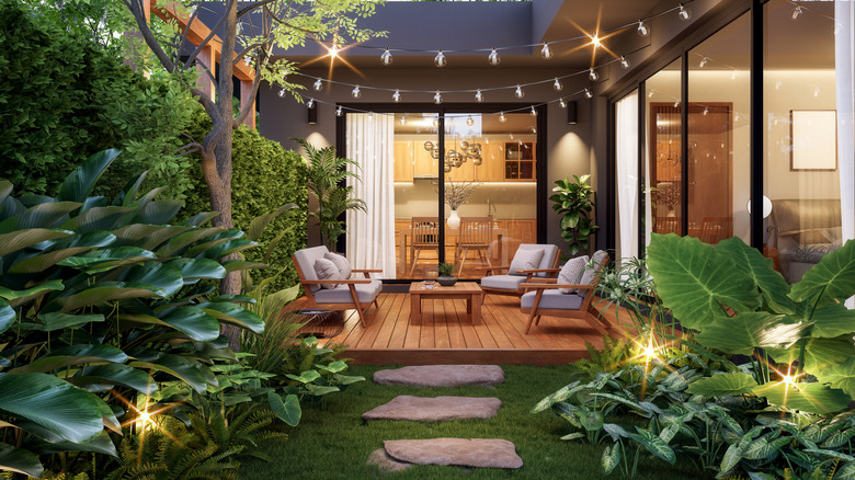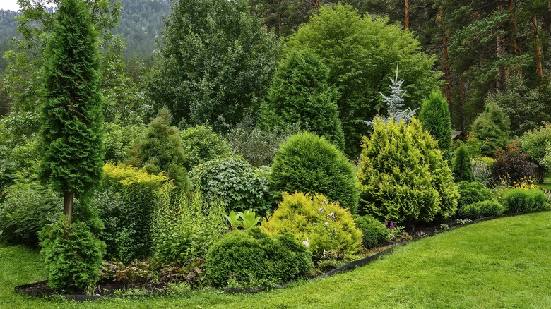 You don't have to make your entire garden green drenched: You can have one dedicated area and plant the rest of your garden with the colorful flowers you normally do. This choice gives you the best of both worlds — a garden full of bright colors and a calm, serene green space. To define these vibes, separate the green-drenched area with screens or lattice, so it feels like an intentional area for relaxation.
