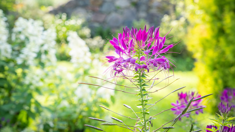 Spider flowers are easy to spot because they have an unforgettable look. Though their clusters of miniature, star-shaped blossoms get their nickname from arachnids, they're not spooky. The moniker comes from the flowerheads' stretched-out stamens, which resemble legs. These eye-catching caper relatives are also quite tall, with some varieties reaching heights of 6 feet. Other types have a shrubbier growth habit.