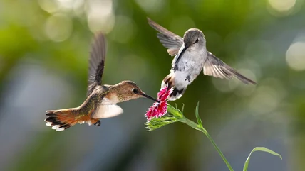 Like humans, birds get parched on steamy summer days. Many flock to puddles and bird baths, but that's not so with hummingbirds. Though these dainty creatures will use those resources in a pinch, they prefer to quench their thirst with nectar. This can be tricky when summer droughts and heat waves make some of their favorite flowers fade. That's where you come in: Plant heat-loving flowers that attract hummingbirds to help these creatures stay hydrated during the hottest days of the season. Spider flowers (Cleome spp.) are ideal for this task. High temperatures and low rainfall are no biggie for these low-maintenance beauties, which tend to flower throughout the summer.
