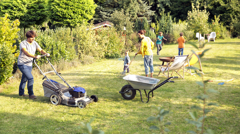 Sweltering summer heat may send you jumping into the nearest pool or heading indoors for glorious air conditioning, but your lawn doesn't have that luxury. Hot, sunny days take their toll on the grass, especially during multi-day heatwaves. Too much heat and sun exposure make it difficult for grass to thrive, even if it receives the same amount of rain it did in cooler seasons. The reason for this is that water evaporates quickly when it's hot and sunny, so there's less moisture available in the soil to nourish the grass. The shorter the lawn, the faster that water evaporates, too — which is one of the reasons why cutting grass too short could be secretly ruining your lawn.