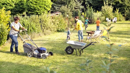 While watering early in the day could help your lawn during times of excessive heat, other factors come into play as well. A heat-stressed lawn is more susceptible to problems such as diseases, weeds, or even pests. Unfortunately, issues like these could lead to a thinning lawn with weak blades of grass. The lawn may even look brown for a while as it goes into dormancy to conserve energy and use less water. Mowing incorrectly could make matters worse, but the good news is that a slight mower adjustment can make a world of difference to the grass. In fact, allowing the grass to grow a little longer during the height of summer helps those green blades stay strong and healthy. To do this, you can adjust the mower's blade height so that it cuts the grass an inch or so taller than usual during periods of hot weather.