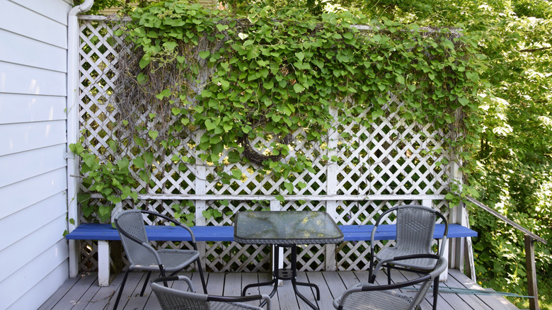 Adding lattice screens to your back deck to increase privacy is one of many outdoor upgrades that add serious value to your home. The easiest way to add lattice screens to your deck is by making a simple frame for them to sit in and attaching the frame to the top deck rail. Making a frame for the lattice allows you to create a lattice wall you can move to different places if you prefer not to attach it to the deck railing. Consider using a vinyl lattice like this Veranda Store Nantucket Gray Garden Vinyl Lattice, or try this Glant Lattice Expandable Fence made of 100% willow sticks for a unique lattice screen.