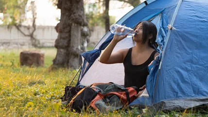 Even if you don't need a lantern, or don't have a plastic water bottle, metal versions can also come in handy while camping. On a chilly night, fill it with hot water for a simple way to warm your sleeping bag without electricity. On hot days, freezing bottles of water and using them both as cooler ice and drinking water is a simple ice hiking hack that can keep you hydrated. Frozen bottles work great for the lamp trick as well.