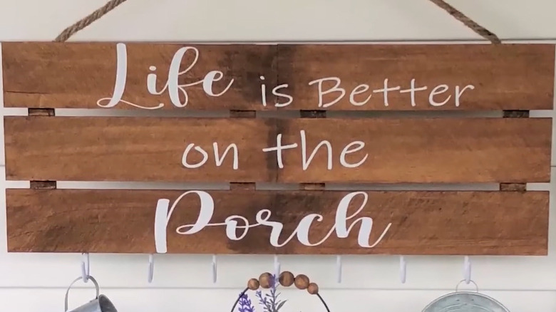 Creating a low-maintenance outdoor oasis is every bit as important as decorating inside, especially during the warmer months. Whether you're making your porch more inviting for guests or crafting a cozy space for when it's time to relax, details matter. Investing in your porch is an update that adds value to your home, and a delightful hanging sign is a fun embellishment that can be the cherry on top of a deliciously decorated space. What's more is that all the materials for it are inexpensive, fun finds from Dollar Tree. All you need to do is glue together a couple of wood pallets, stain the resulting sign, and customize it with a message of your choice. To hang it, hot-glue rope to the back, and then screw on hooks for decorative storage.