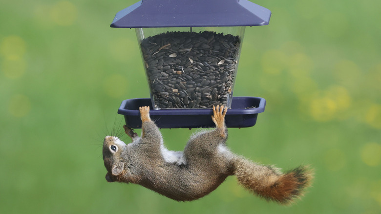 Squirrels will do almost anything to keep their bellies full, from tightrope-walking on power lines to reach acorn-filled trees to doing acrobatics on bird feeders in order to access their seeds. Their penchant for birdseed can empty your feeder quickly, and their chaotic presence may counteract your efforts to attract more songbirds to your yard. Plus, squirrels don't need birdseed to survive. As omnivores, they'll eat insects, plants, fungi, and even cheese. One of your best tools for repelling these bushy-tailed interlopers is ground coffee beans. Instead of tossing your used beans in the trash, leverage their scent to keep squirrels away from your feathered friends' feeders. You can also use spent beans to discourage squirrels from digging up your garden or foraging for snacks in your garbage cans.