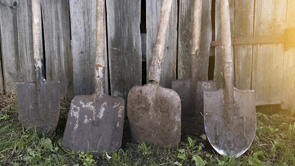 A shovel with any style of shovel head will do; the larger the head, the more seed it can hold. It doesn't even matter if the shovel's handle is broken or missing; this project requires only the shovel head with its attached socket or collar. If you have no old shovels, no worries. You may be able to acquire an old shovel head for free from your local BuyNothing group or a neighbor cleaning out their garage and shed. Just ensure to clean it thoroughly and remove any dirt or rust that can hurt the birds feeding off it. You'll also need a post, such as a 4-by-4, wood screws, and a hole saw that matches the diameter of the shovel socket. Alternatively, you could just install the shovel head into any shady tree in your yard.