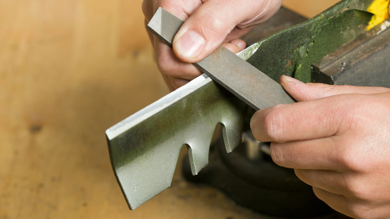 There are usually obvious signs blades need to be sharpened. These include uneven cutting and tearing of grass. Additionally, your mower may become harder to push and often bog down or stall. If you notice any of these signs, sharpen your blades immediately. However, the best practice is to not wait that long. Instead, proactively aim to sharpen them every 25 hours — or around the same time you do an oil change.
