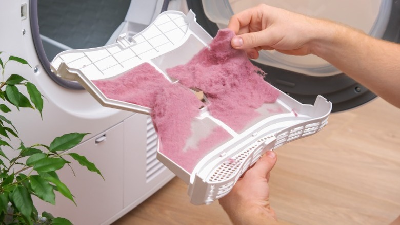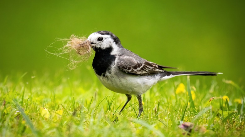 Another material that frequently gets tossed into bird's nests is dryer lint. At first glance, it's a fluffy, warm option that can turn a birdhouse into a cozy space. However, dryer lint becomes a mess when it gets wet. Instead of being cohesive, lint falls apart. The result is a wet, squishy mess that doesn't dry well and won't keep birds warm, and may encourage mold or mildew. Once it gets wet from the elements, a bird nest using dryer lint also loses its structural integrity. Even though you should add drainage holes in your DIY birdhouse to avoid accumulated water, it won't prevent moisture damaging dryer lint.