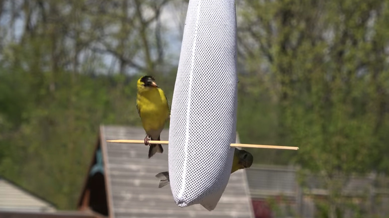 Watching birds is one of the great joys of having a backyard. Instead of hoping they show up on their own, you can make your yard more inviting with a few simple tricks. Adding birdbaths, raising birdhouses, and planting native flowers are a few of the simple hacks to get birds in your yard. All of these methods are great for DIY projects, but feeders might edge out the rest in simplicity and frugality. It doesn't get much easier or inexpensive than filling a laundry bag with seed and hanging it from a tree.