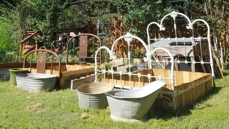 It's time to make your bed. If you have a whole bed frame, why stop at just the headboard? You could set the whole thing up in your yard as the framing for your garden bed. Arrange boards around its perimeter to work as the sides, even utilizing the bed slats. Be sure to make your raised bed deep enough to encourage growth from the kinds of plants you want. Line the bed's base with landscape fabric, cardboard, or layers of organic matter such as compost or wood chips. If you already have a raised bed, try training vines up a headboard placed at one end.