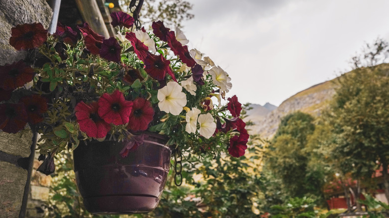 Sometimes a house has just one window that can accommodate a box-style planter, but its facade needs a bigger floral statement. If you find yourself in this situation or simply crave more space for a container garden, hanging baskets may be the answer. Attaching them to a window box can increase the available real estate for a range of container-friendly plants. The trick is suspending the baskets in a way that's both stylish and secure. Plus, you'll need to find plants that flourish in the growing conditions your baskets offer. Many hanging baskets are ideal for trailing flowers like calibrachoa and low-maintenance succulents such as burro's tail.
