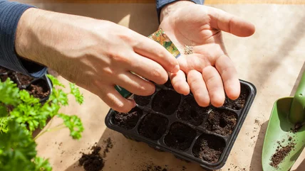 Place about 2 teaspoons of clean sand such as play sand into the shaker if working with one packet of small seeds. Don't use sand picked up off the beach or a sand pile since there may be contaminants that aren't good for the garden soil. The goal is a mixture that's about 1 part seeds to 4 parts sand. Add your seeds, then swirl the shaker around a bit to blend them with the sand. Shake the seed mixture in the desired area of the garden or even in a large planter. As an added bonus, the sand makes it easier to see where you've added seed so you can tell if you missed a spot when planting a large area. Plus, these small seeds can be sown on top of soil, like grass seed. Sand is also good for the soil; topdressing your lawn with sand is the key to gorgeous grass in areas with poor drainage.