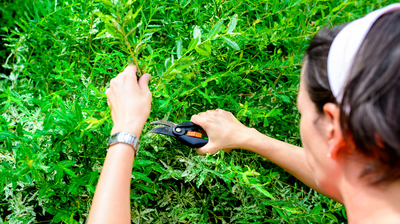 To succeed at making rooting liquid from willow foliage, you need to collect cuttings from the right parts of the plant. Make sure to snip the newest stems you can find, ideally green shoots and twigs that are less than a year old. The best time to do this is early in the spring. Gather enough plant material to fill a jar or two. Then, strip away the leaves and cut the stems into 1-inch pieces. Some gardeners also crush them to help release the auxin.