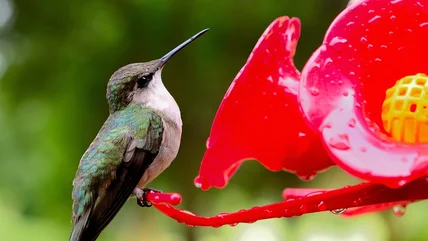 Once you have all the parts, clean your organizer thoroughly and drill a hole in each day's lid. Insert and hot glue the flowers, then fill the container with hummingbird nectar. Finally, set your new feeder outside. Be patient while waiting for hummingbirds to find your feeder, but know that if you build it, they will come. Don't forget to regularly clean your feeder to prevent bacteria from forming and harming your birds. When it's hot, clean it at least every other day. When it's a little cooler, a couple of times a week will do.