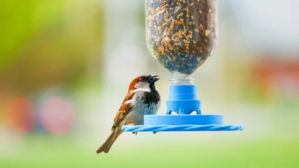To install a metal pole, start by digging a small hole where you want it placed. Insert the pole into the ground and use a piece of scrap lumber and hammer, or a soft mallet, to gently pound it in. Once it's stable, fill in the dirt around the base and tamp it down. If the pole isn't vertical, straighten it and use scrap lumber as a shim next to the pole to keep it in place. Want to take it to the next level? A baffle is a must-have product to keep squirrels from eating bird seed. With a little planning and the right tools, your bird feeder pole will be perfectly positioned to welcome feathered visitors without uninvited, seed-stealing guests. Now, keep your bird feeder mess-free with a simple DIY upgrade.