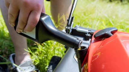 Regularly changing and topping off your lawn mower oil is one of the simplest ways to extend the life of your mower. However, pouring oil into your lawn mower can also be a bit messy. The flow of oil from the container isn't always consistent, and the oil fill hole on the mower is typically a small target to hit. Of course, for most people, the solution is to grab a funnel. But what if you don't have a funnel handy? In that case, you just need to make sure you are holding the oil container correctly and grab a screwdriver, which will help guide the oil into the reservoir, not all over the engine and mower deck.