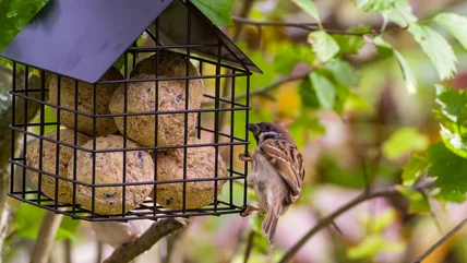Instead, start with uncooked beef and trim the fat off to use. If you'd rather skip this step, your local butcher may have beef trimmings, or tallow, available. You can also find tallow at many cooking supply stores. Lard, which is made using pork fat trimmings, is also a safer option than bacon grease. Render the fat by melting it in a pan or pot on a low heat setting, then let it cool slightly before pouring it into a food-safe silicone or plastic mold. Mix in your birdseed, let it harden in the freezer, and your suet cake is ready to use.