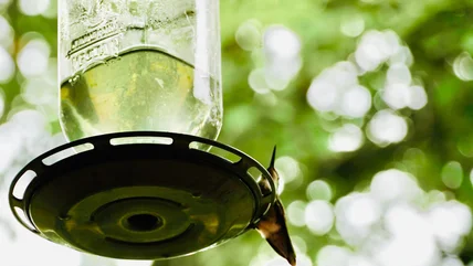 You will want to mix two parts water to one part distilled white vinegar; measurements can vary depending on the amount of cleaner you need. You may want to have a fresh toothbrush on hand to aid in the cleaning process, as it will help you remove any nectar residue stuck inside the jar. Use it to clean the base as well. If you place both the jar and base in a bucket with the water and vinegar mixture and let it soak, you can be sure it's removing any bacteria that may be on it while reaching the inside of the tiny feeding holes. Rinse the jar and the base of the well with hot water, and then allow them to air-dry completely before refilling the feeder with fresh nectar. Before you put it back, be sure you know where to hang your feeder to keep hummingbirds coming back.