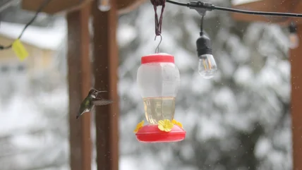 In addition to reducing the amount of water you use in your nectar mix, there are other ways to protect your nectar during cooler weather. For one, even though the temperatures are dipping, you still need to replace the nectar every few days and regularly clean your hummingbird feeders. It is also a good idea to take your feeders inside at night if the overnight temperatures are predicted to be particularly cold. This will ensure the nectar is at a suitably warm temperature when hummingbirds begin looking for breakfast — just make sure you have them back outside early in the morning.