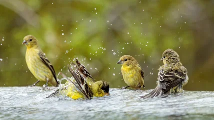 A oil drain pan makes an unlikely birdbath