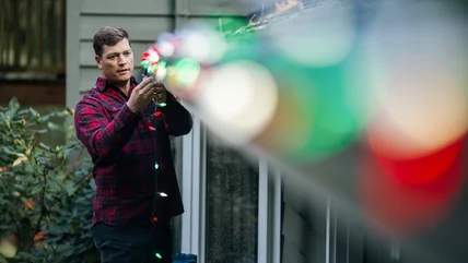 Between the two, the shooting star light display is the more complicated, but it's not so hard if you take it one step at a time. Begin by deciding where your display will go to be sure that it fits in the area you want. Plan where the light trails will go and add hooks to hang them from or stakes in the ground to attach them to. If you don't have something solid to hang the light trails from, consider this easy method to hang string lights using adjustable poles.