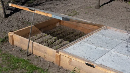 Cold frames are simple, bottomless box structures set directly on the ground. They usually feature a wooden frame and a transparent lid of glass, acrylic, or polycarbonate to let light through. Many DIY cold frames feature a hinged top to control the internal temperatures by propping it open or closed as needed. This is crucial because ventilation prevents excessive heat or moisture buildup, which can harm plants. They should be monitored regularly, even on cloudy days, to ensure plants aren't overheating