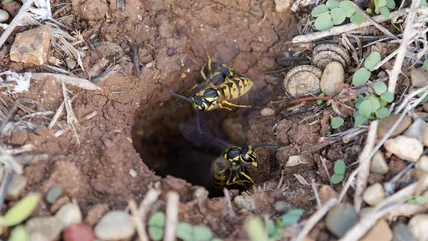 During warm weather months, it's a common practice to scan porches, eaves, and overhangs for wasp nests. While looking up is certainly prudent, it is also worth taking a glance at the ground — some types of wasps, as well as bees, will either burrow or make their nests in existing holes in the ground. Should you find (or stumble upon) an in-ground wasp nest, you will need to figure out if and how you need to deal with it.